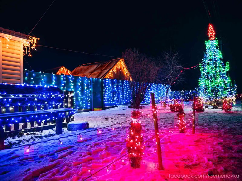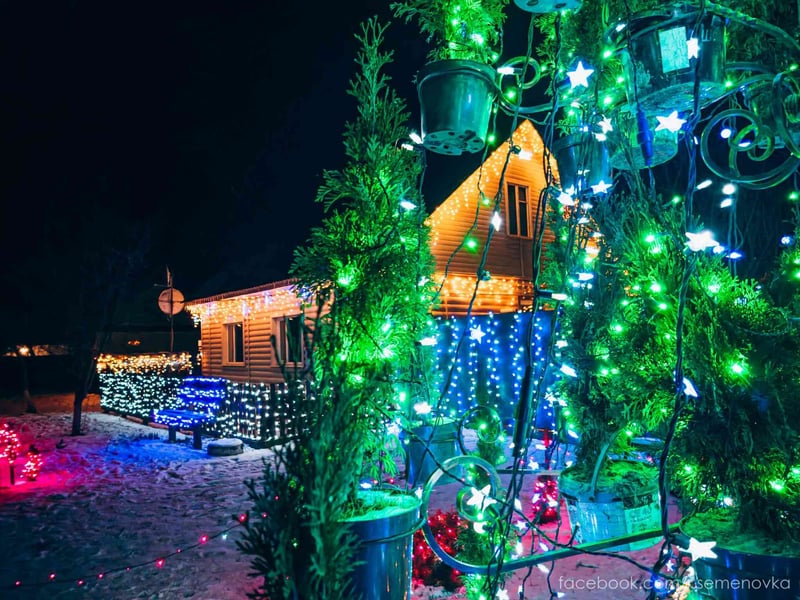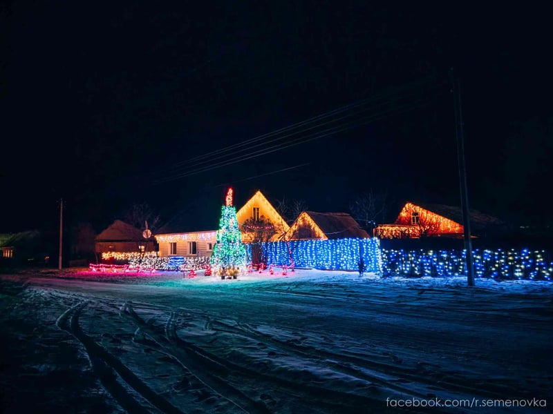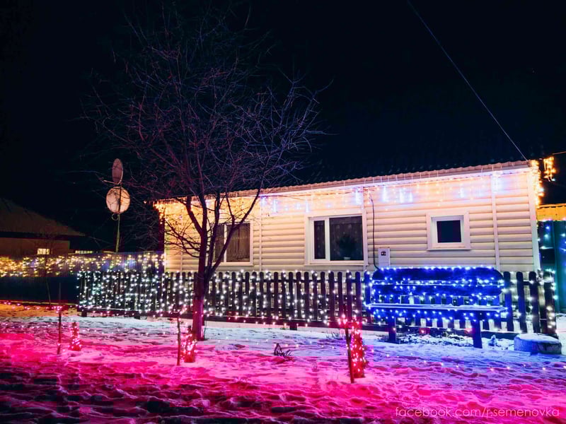 У селі Семенівка Чернігівської області місцевий житель прикрасив свій будинок та прилеглу територію новорічними гірляндами.