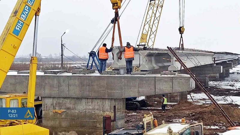 На Чернігівщині дорожники монтують балки прогонової будови мосту через ріку Снов, повідомили у пресслужбі Укравтодору на фейсбук-сторінці.
