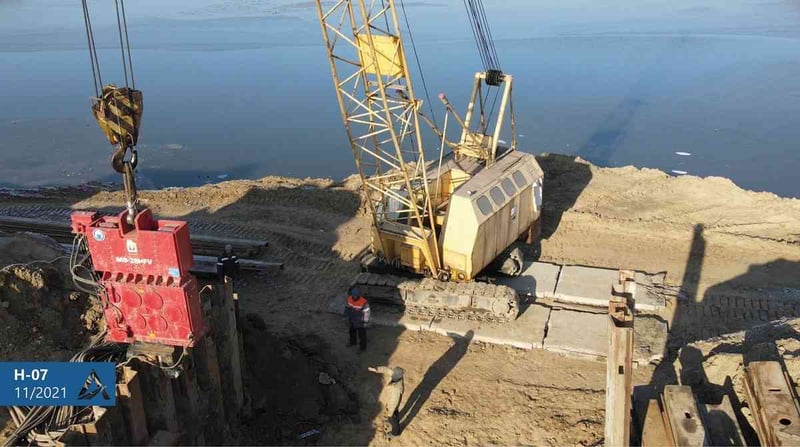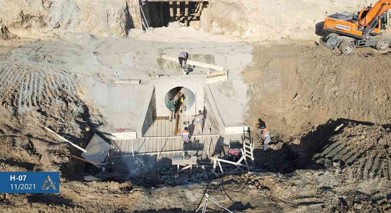 Дорожники посилюють та розширюють земляний насип дороги. Всередині нього влаштовують нову гофровану трубу, завдовжки 47 метрів, яка забезпечить перетікання води з верхнього ставка у нижній.