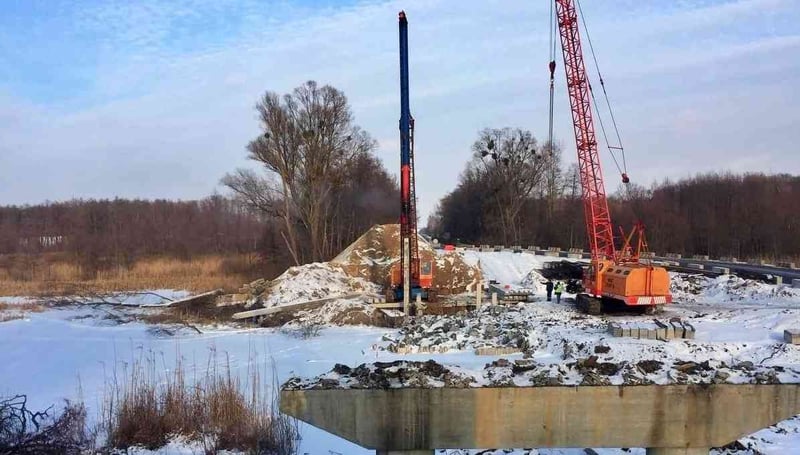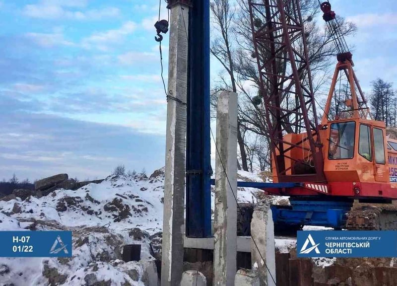 Нині мостобудівники проводять демонтаж старої конструкції. Паралельно забивають палі для нових опор.