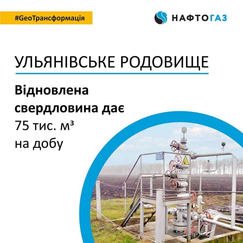 Свердловину ввели в експлуатацію з добовим дебітом 75 тис. куб. м. Долучення до розробки нового горизонту забезпечило збільшення видобутку по Ульянівському родовищу до 205 тис. куб. м на добу.