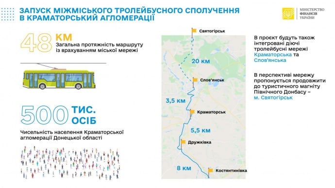 “Міністерство фінансів веде переговори з міжнародними фінансовими організаціями про фінансування проєкту організації тролейбусного сполучення між містами Краматорської агломерації”, – повідомляє пресслужба Мінфіну.