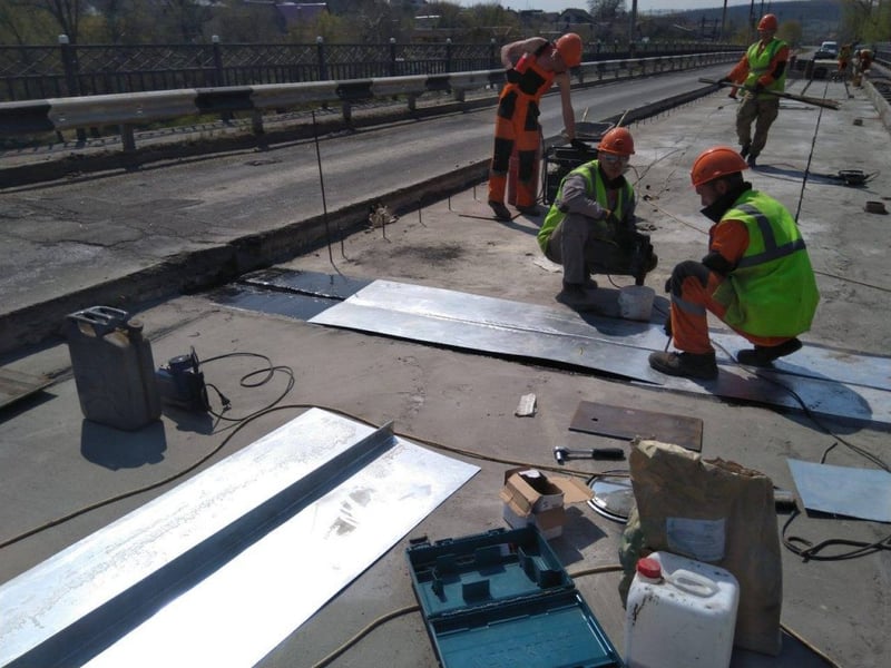Наразі підрядником демонтовано застаріле мостове полотно, яке втратило гідроізоляційні властивості, що загрожувало руйнуванням опор. Паралельно будівельники виконують роботи з відновлення захисного шару залізобетонних елементів споруди (спеціальним полімерно-цементним розчином), і розпочинають улаштовувати нові шари дорожнього одягу, а саме: стічний трикутник, деформаційні (температурні) шви, гідроізоляцію та асфальтобетонне покриття.