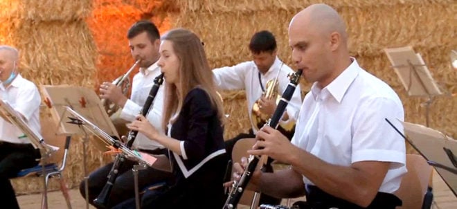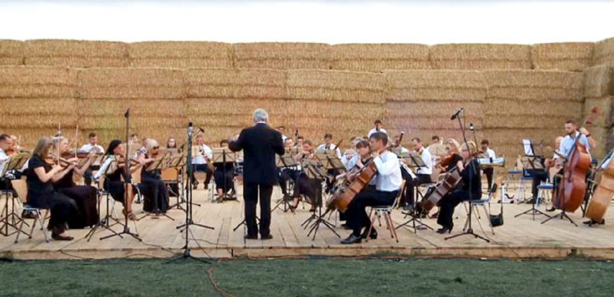 Оркестр Харківської обласної філармонії виконав класичні та популярні музичні композиції у скошеному полі у Вовчанському районі Харківської області.