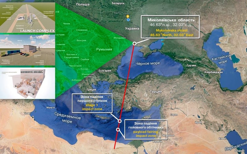 В якості потенційних місць розташування ракетно-космічного комплексу в Україні розглядається Херсонська область та узбережжя Бузького або Дніпровського лиманів.