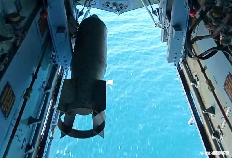 Мі-14ПЧ відпрацював елемент радіолокаційного пошуку човна умовного противника та тактичне бомбометання у заданому районі.