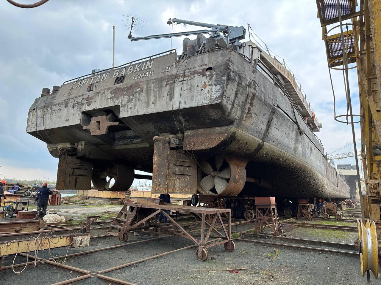На Кілійському заводі модернізують суховантажне судно — теплохід «Капітан Бабкін».