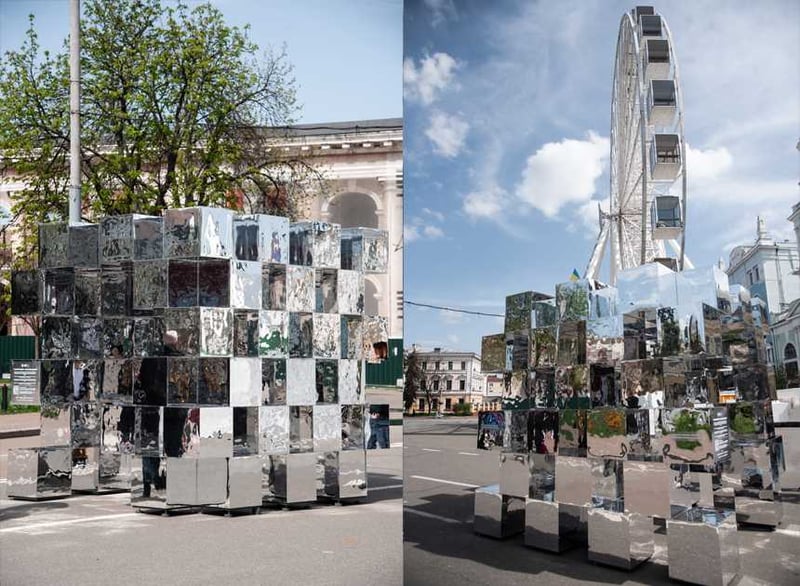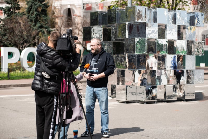 У Києві на Контрактовій площі встановили дзеркальний артоб’єкт з лабіринтом, аби нагадати містянам, що боротьба з корупцією починається з кожної окремої людини.