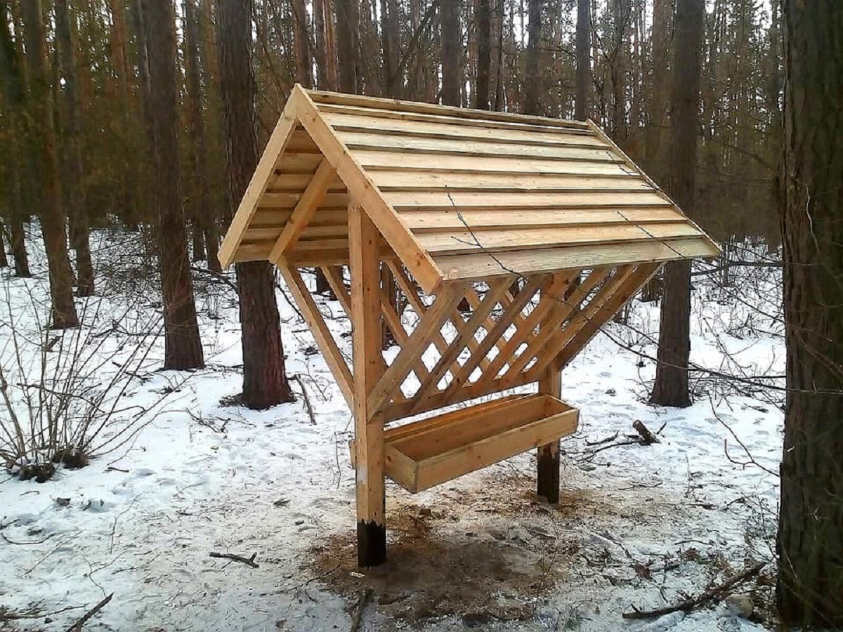 У таких саморобних дерев’яних годівницях вже невдовзі з’явиться підкорм для диких тварин. На території лісу мешкають чимало лісових кабанів, козуль, лосів, зайців та інших тварин. Саме вони потребують допомоги у важкий зимовий час.