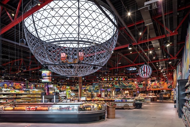 Повідомляється, що стіни торговельного залу площею 1798 квадратних метрів розписані у вінтажному стилі. Зі стелі звисають повітряна куля і так звана «Куля сміливості» – цирковий атракціон у формі сфери, всередині якої їздили на мотоциклах артисти. Замість мотоциклу в кулю помістили електроскутер – запевняють, що саме таким, дружнім до довкілля транспортом розвозять онлайн-замовлення кур’єри.