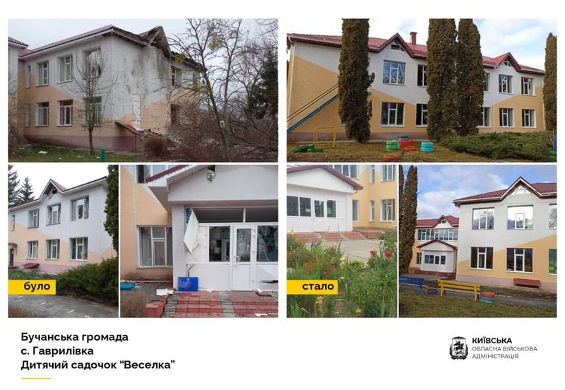 Зокрема відновили Гаврилівський заклад дошкільної освіти № 10 «Веселка» Бучанської громади. Сьогодні його відвідують 190 дітей.