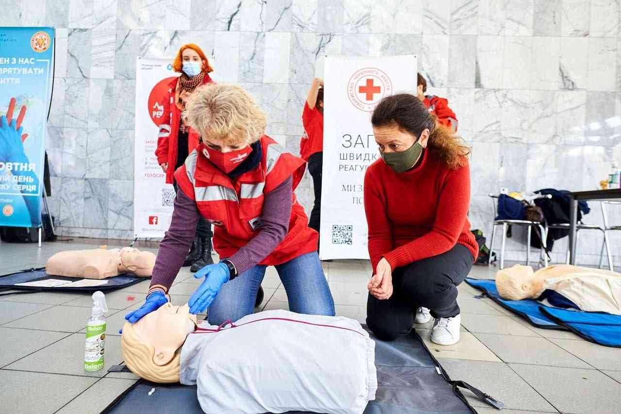 Під час акції всі охочі змогли навчитися серцево-легеневій реанімації із застосуванням автоматичного дефібрилятора.