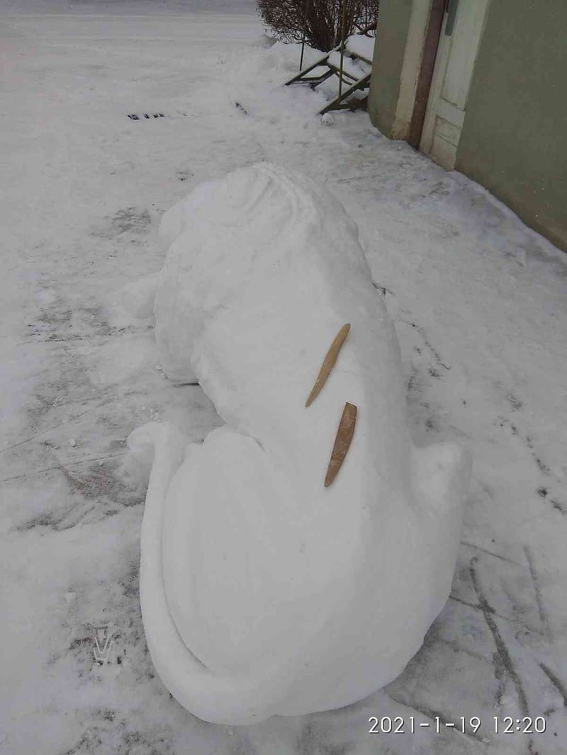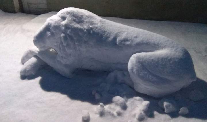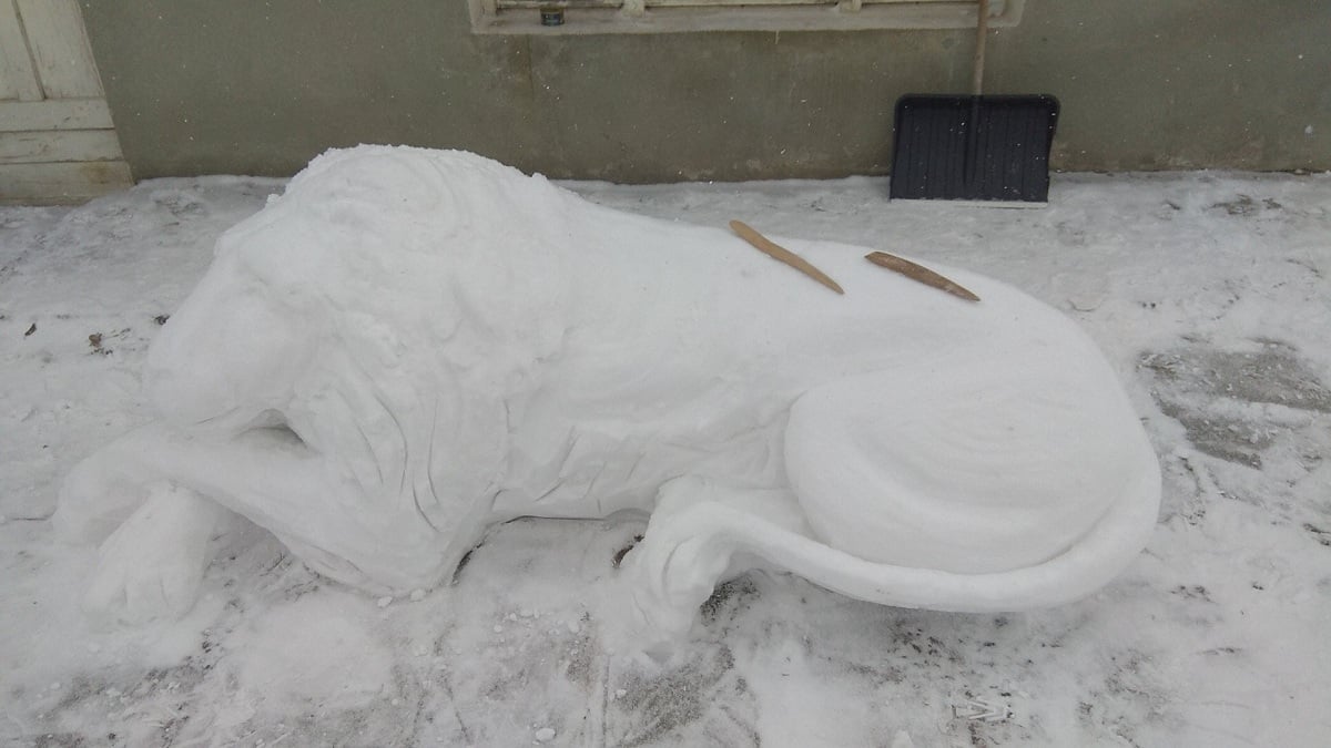 Зазначається, що ідея створити таких левів у чоловіка виникла, коли він прибирав сніг у дворі.