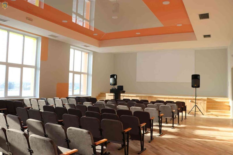 Двоповерхова будівля готова приймати школярів. Навчальні приміщення, спортзал, роздягальні з душовими та санвузлами, вестибюль, гардероб, кухонний блок із виробничими допоміжними та побутовими приміщеннями, а також актовий зал, фізкультурно-спортивна та навчально-дослідні зони, майданчики для гімнастики для відпочинку. Тут є все необхідне для навчання, спорту, харчування та відпочинку для дітей різної вікової категорії.