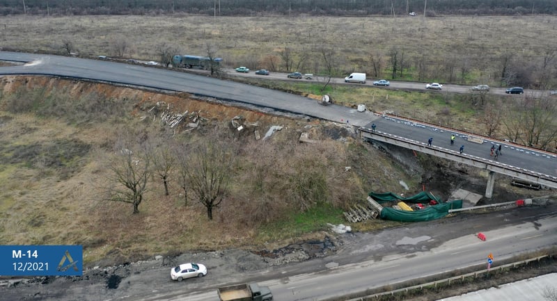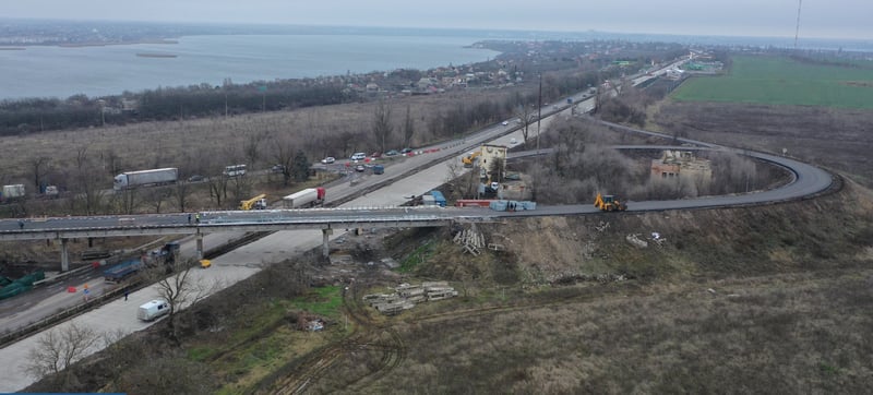 Відновлення дворівневої транспортної розв’язки виконується у рамках капітального ремонту під’їзного шляху до міста Миколаєва на ділянці траси М-14 км 126+000 – км 129+122.