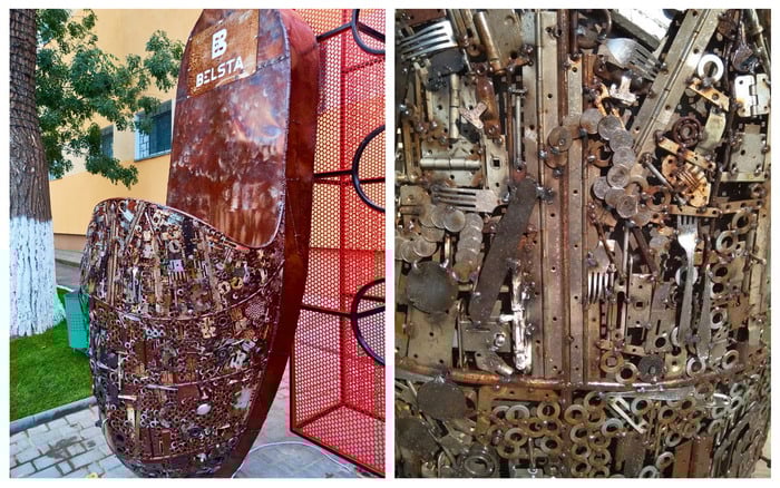 У Білгород-Дністровському на Одещині з’явився величезний тапок, зроблений з безлічі металевих деталей.
