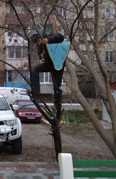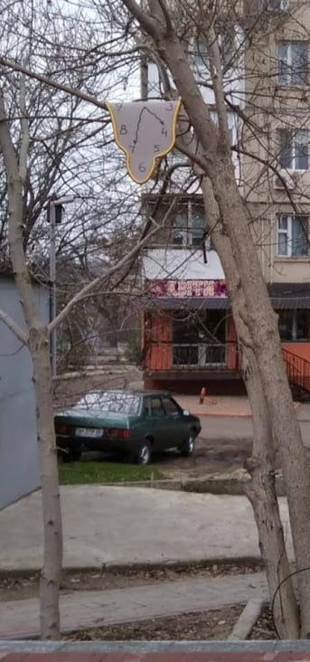 Пізніше на деревах скверу почали з’являтися незвичні годинники – схожі на легендарну картину геніального іспанського художника Сальвадора Далі “Сталість пам’яті”.