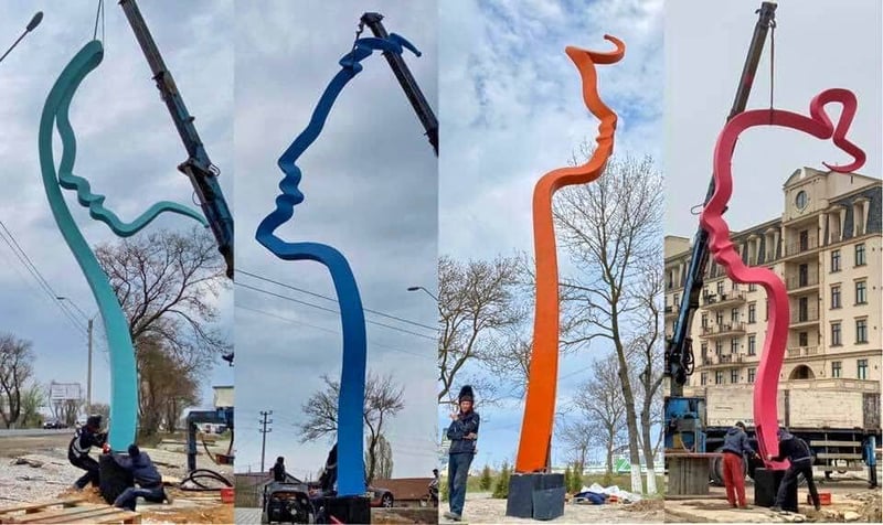 Висота кожного арт-об’єкта близько 12 метрів, вага – близько тонни. Профілі пофарбували у різний колір.
