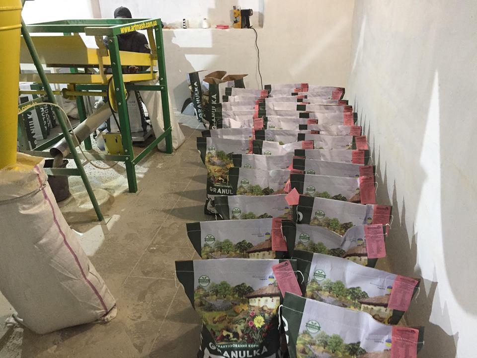 “Потужність міні-заводу становить 150-200 тонн на місяць, але за необхідності плануємо нарощувати виробничі потужності і працювати в декілька змін. Від ідеї до упаковки все розробляли самі: бірку, мішок, нитки. Ми зробили маленький цех виробництва для того, щоб наші працівники фермерського господарства мали роботу круглий рік та були зайняті”, – розповів директор підприємства Євген Кифоренко.