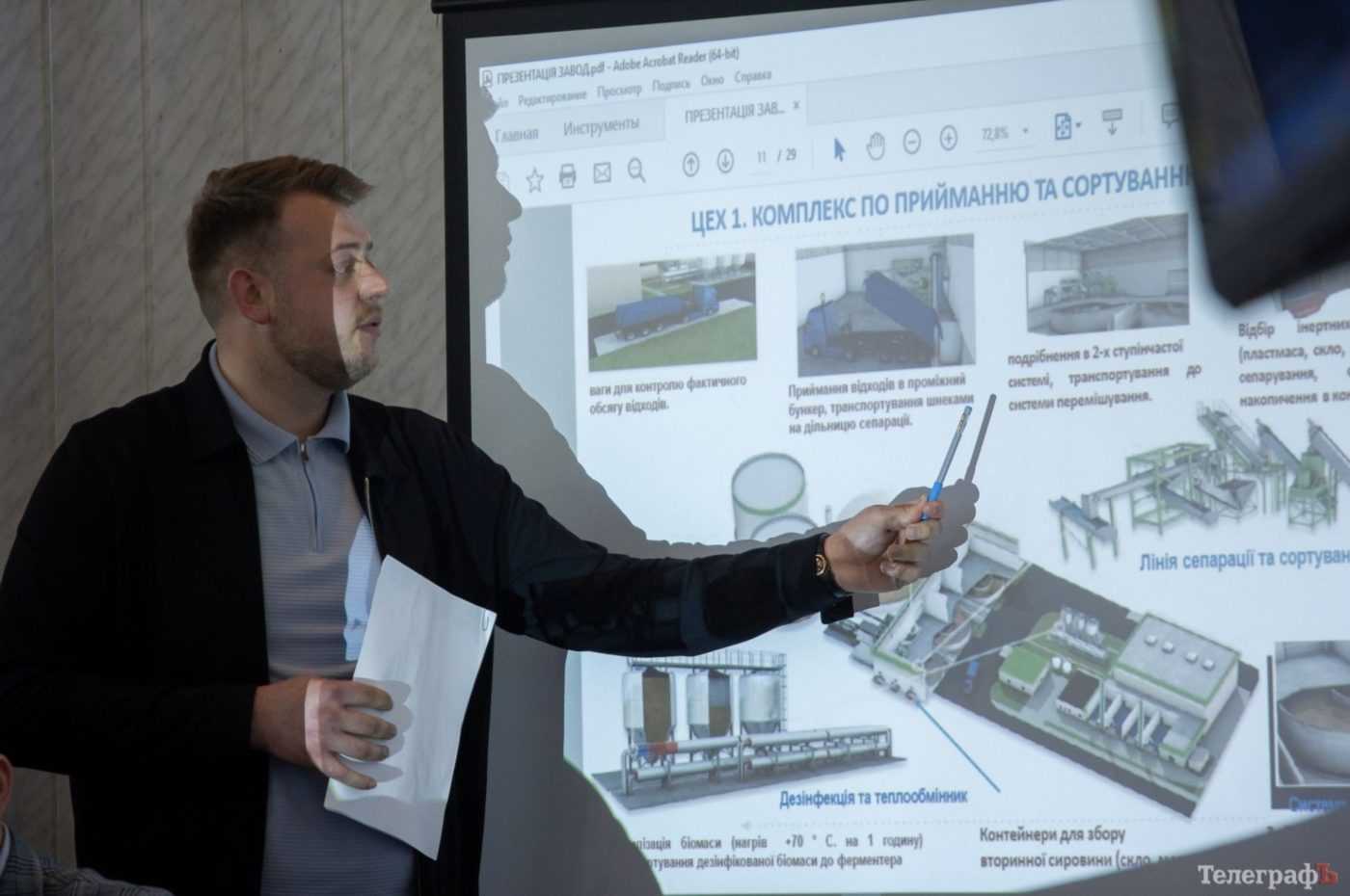 Концепцію заводу презентував заступник глобинського міського голови Олександр Кочерга. Він показав, як працює такий завод у німецькому місті Бад-Кестріц.