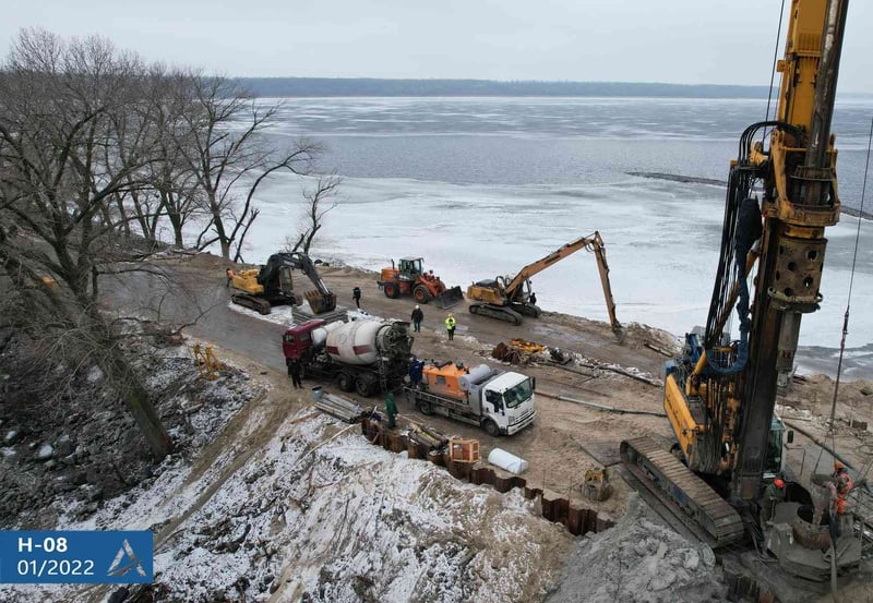 На Полтавщині розпочато бетонування буронабивних паль під час капітального ремонту мосту через річку Сула на автодорозі Н-08 Бориспіль-Маріуполь поблизу селища Липове Градизької громади.