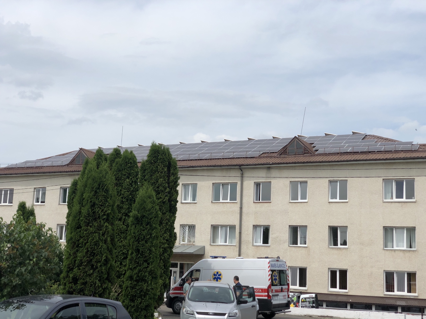Зазначається, що на даху терапевтичного відділення лікарні встановлено 80 фотоелектричних панелей, здатних забезпечити 44 кВт електричної потужності.