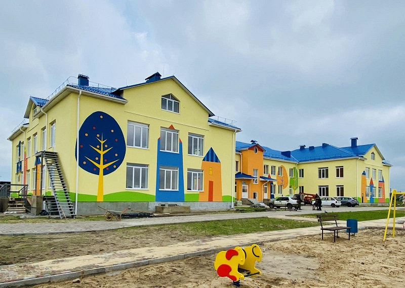 Нині будівельники активно працюють над благоустроєм території дошкільного навчального закладу. Зокрема, вони прокладають доріжки, облаштовують ігрові майданчики, де згодом буде встановлено гірки та інше обладнання для проведення цікавого дозвілля малят.