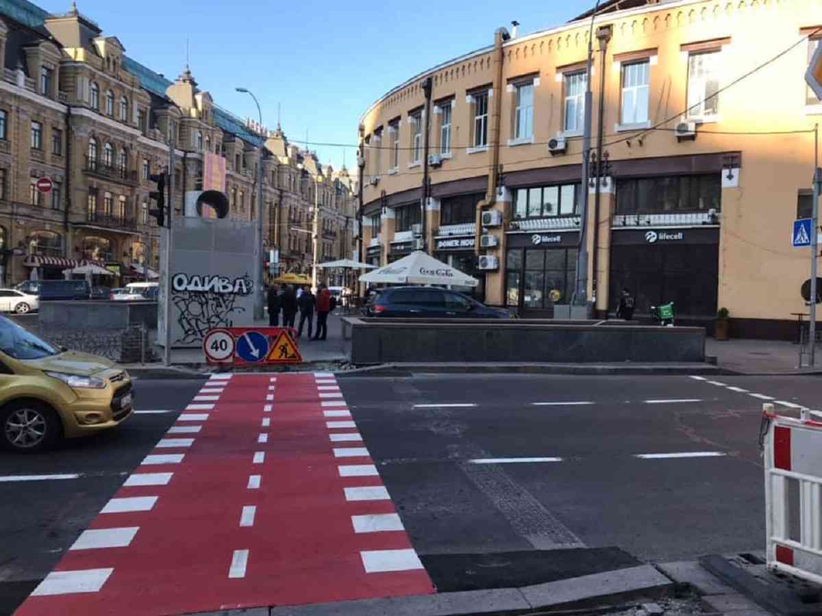 У Києві на Бессарабської площі почали облаштовувати нову велодоріжку.