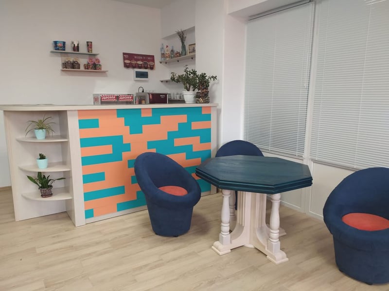 У фойє кінотеатру на зручних диванах глядачі мають змогу поласувати запашною кавою та попкорном.