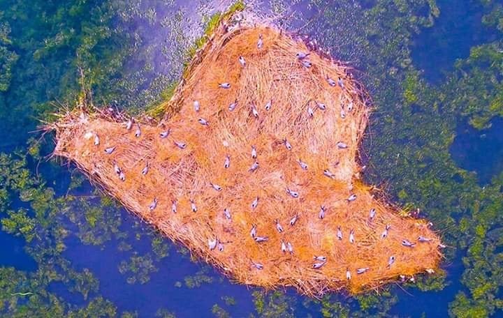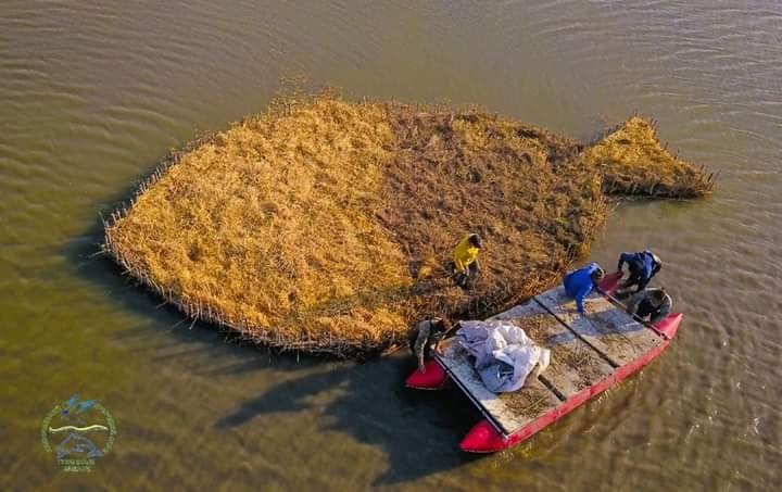 В основу острова пішли браконьєрські сітки, над ними – понад 200 снопів очерету, а зверху – м’яка трава і солома.