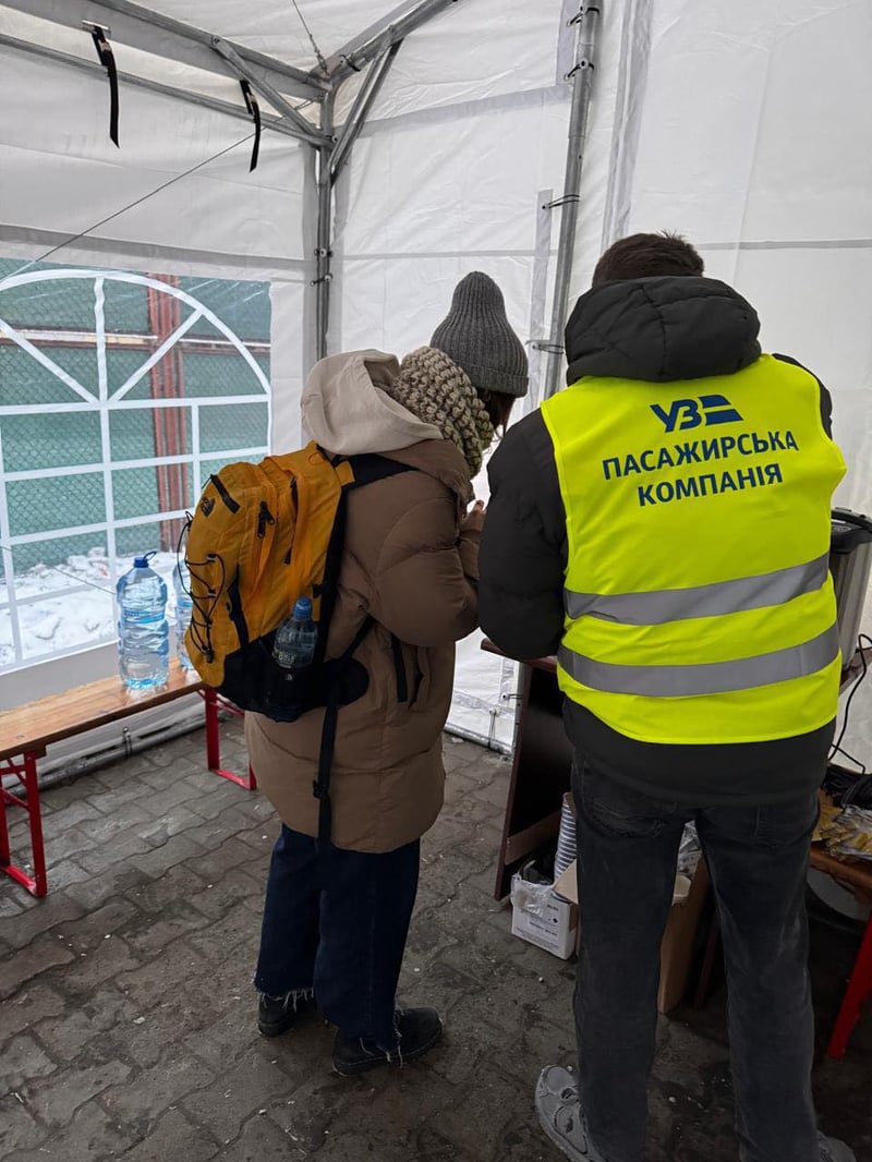Українські та польські залізничники встановили пункт обігріву на вокзалі Перемишля. Пункт обігріву працює з ранку до ночі — у години, коли курсують поїзди до та з України.