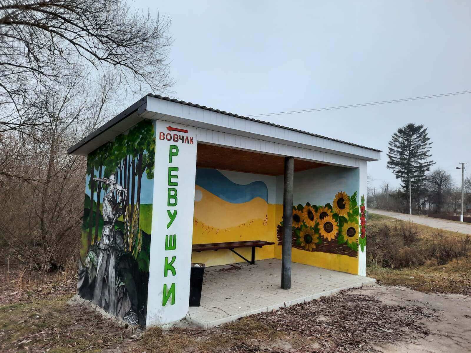 У селі Ревушки Ковельського району Волинської області розфарбували зупинку громадського транспорту.