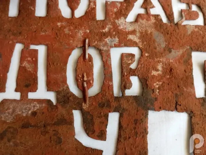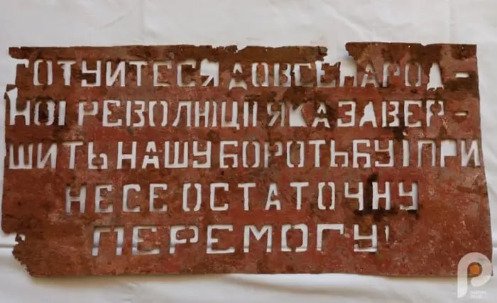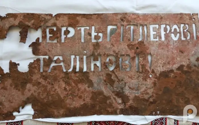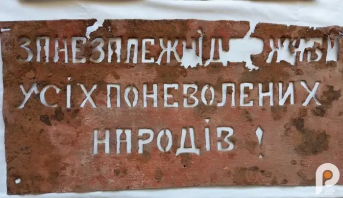 На табличках містяться заклики до свободи та незалежності, зокрема, вони закликають боротися з радянськими та німецькими окупантами.