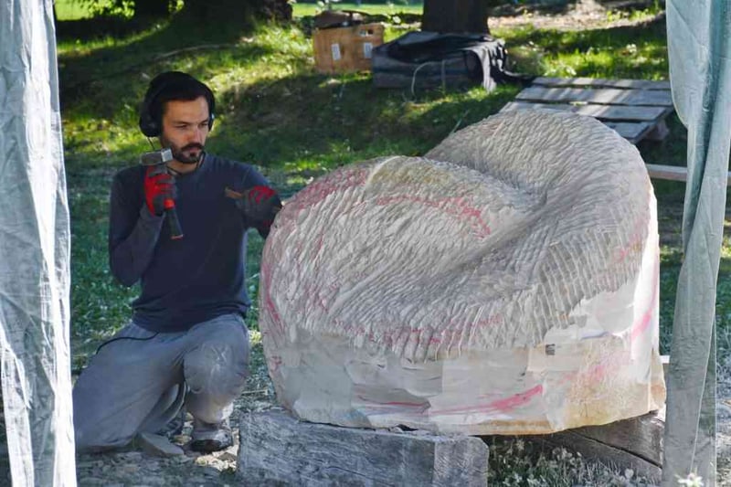 Зокрема Йорг Ван Дейле працює над скульптурою з граніту. Він розрізав камінь навпіл і після обробки знову з’єднає дві половини, щоб отримати бажану форму. Скульптура матиме назву «Поцілунок для миру».