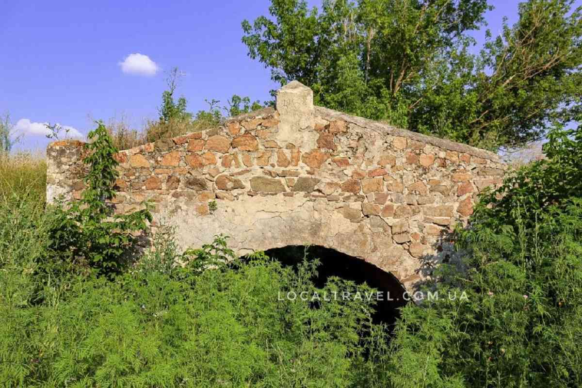 Старовинний кам’яний міст побудований над невеликою балкою біля села Червоногірка Токмацького району.