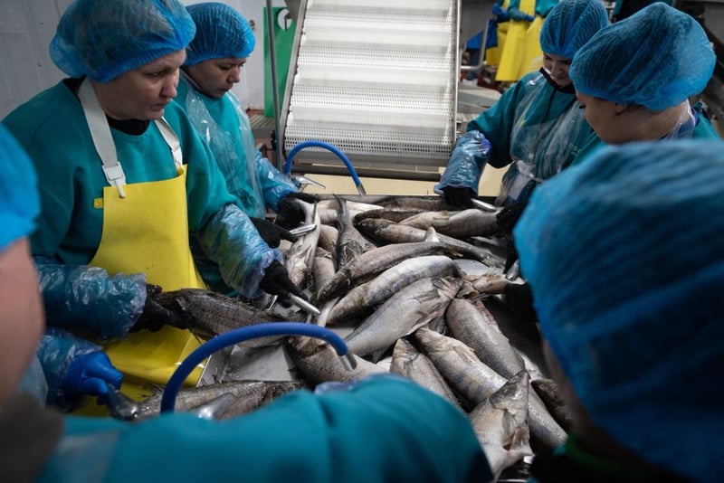 За словами Кисилевського, який завітав на виробництво з робочим візитом, у найтеплішому цеху температура +12, а на складах до -22. У цеху первинної розділки риби кожен працівник відокремлює два філе кожні 15 секунд. Щохвилини з конвеєра сходить 60 банок оселедця. А загалом щомісяця тут випускають 800 тонн готової продукції.