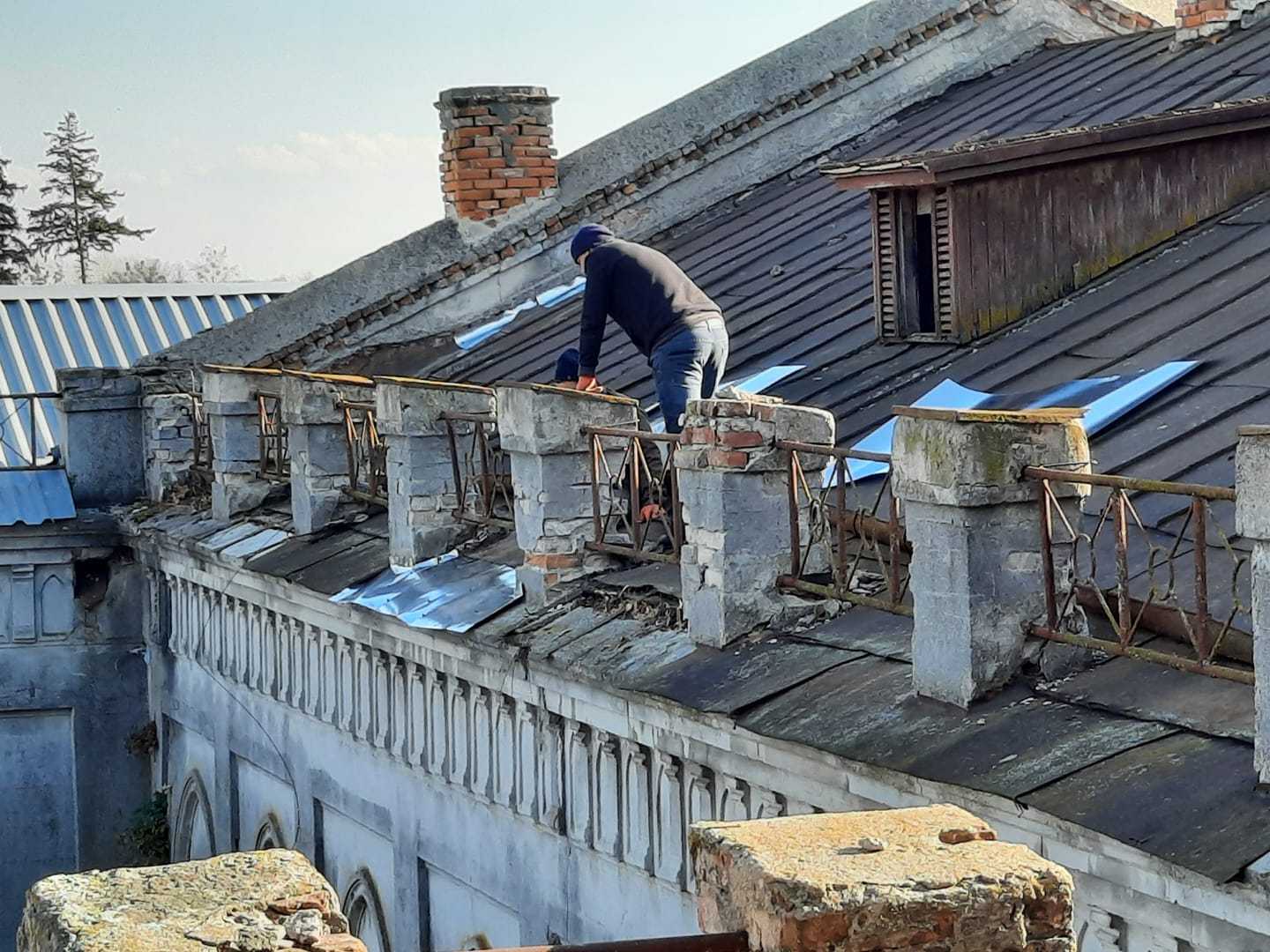 «Ми об’єдналися з громадськістю, зібрали кошти, закупили матеріал, найняли будівельників-висотників і розпочали роботи з консервації найпроблемніших частин даху, де покрівля була в хорошому стані, ми її вирівняли й прикрутили по-новому», – написав Тарас Коновалов.