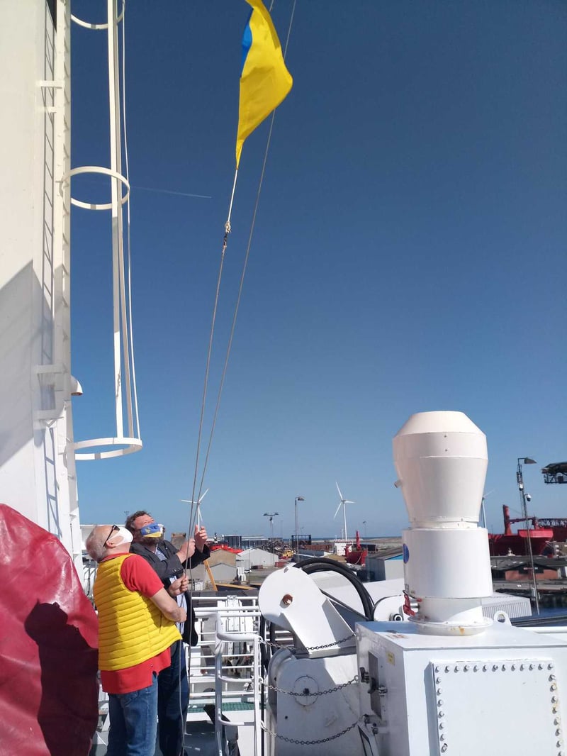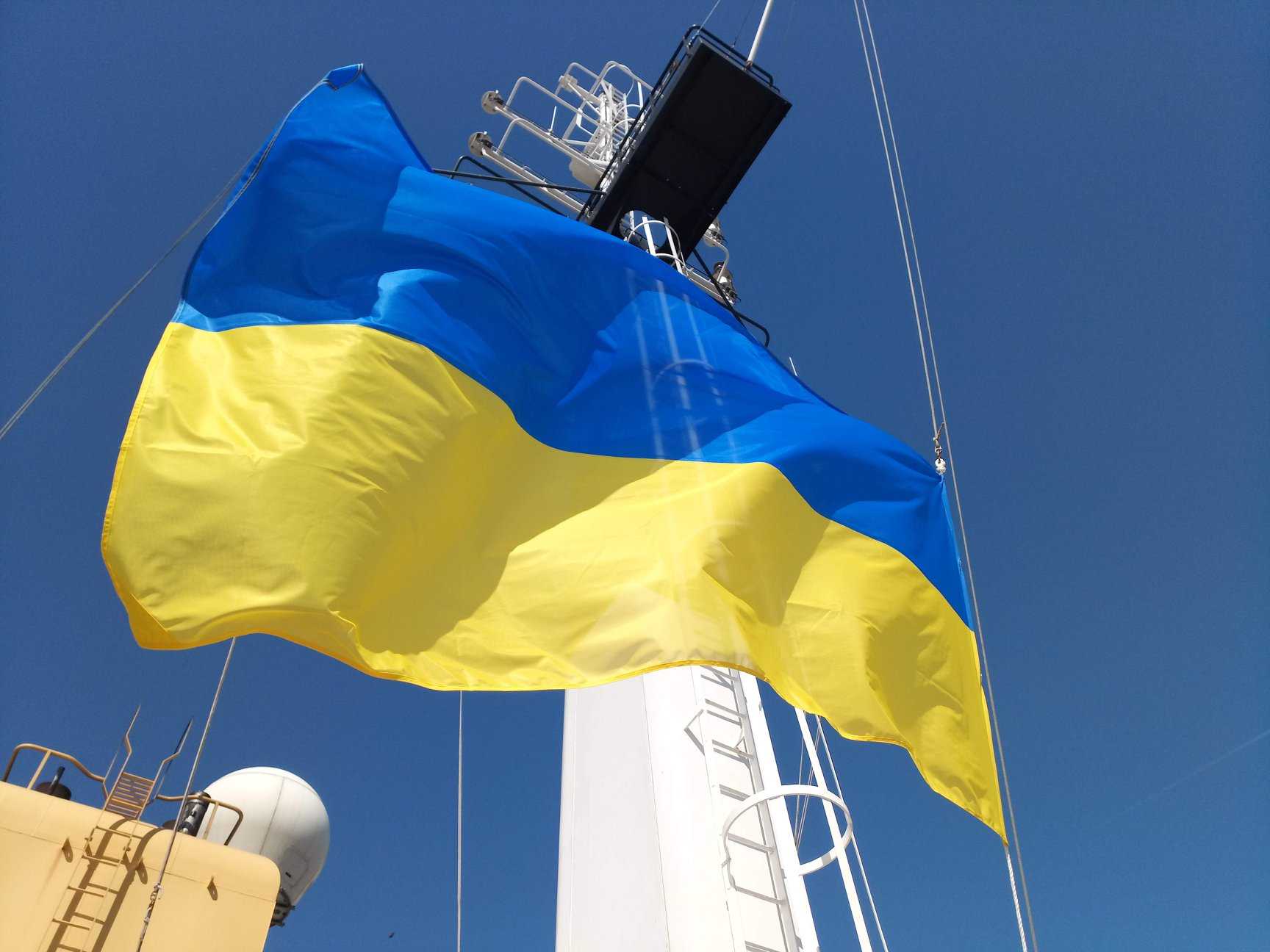Над флагманом українського наукового-дослідного флоту – колишнім британським криголамом James Clark Ross – підняли синьо-жовтий прапор.