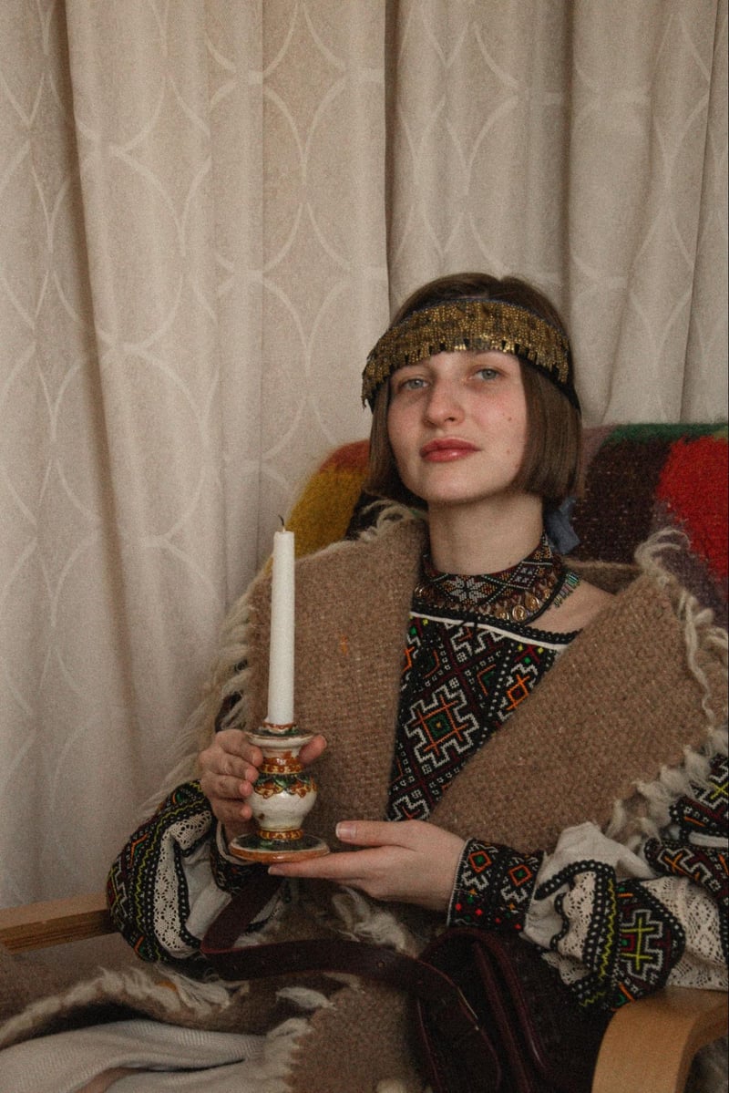 Я народилася й виросла в селі на Одещині. Мама працювала вчителькою, на зимові свята писала для нас сценарії — ми підбирали костюми й виступали перед публікою з близьких та рідних. Тепер я вже сама мама, виховую доньку та сина, і мені дуже захотілося показати їм, як проходили свята в моєму дитинстві. Тож ми вирішили зробити якусь виставу та піти в гості до хрещеної й до подруг. Я почала шукати хустку, розпитувала в сусідів, і одна з жінок мені сказала, що мені не в Одесі — в селі треба шукати щось традиційне.