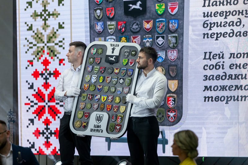 Центральним лотом вечора було «Панно Перемоги» — композиція, складена з 51 бойового шеврона різних підрозділів та бригад.