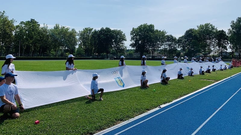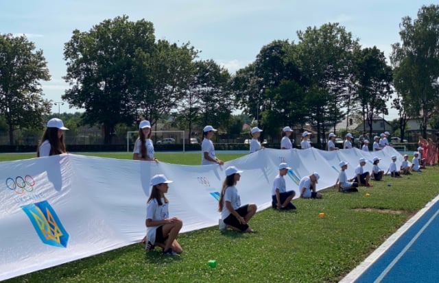 У дитячо-юнацькій спортивній школі в Мукачеві на Закарпатті розгорнули найбільший Олімпійський прапор України.
