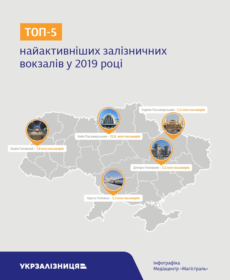 Зазначається, що у 2019 році найпопулярнішими вокзалом України став Київ-Пасажирській, який відвідало 22,8 млн пасажирів.