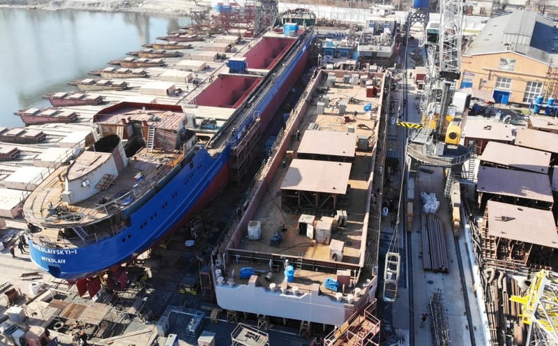 На сьогодні усі секції, необхідні для будівництва замовлення, виготовлені та перенесені на передстапельний майданчик підприємства.