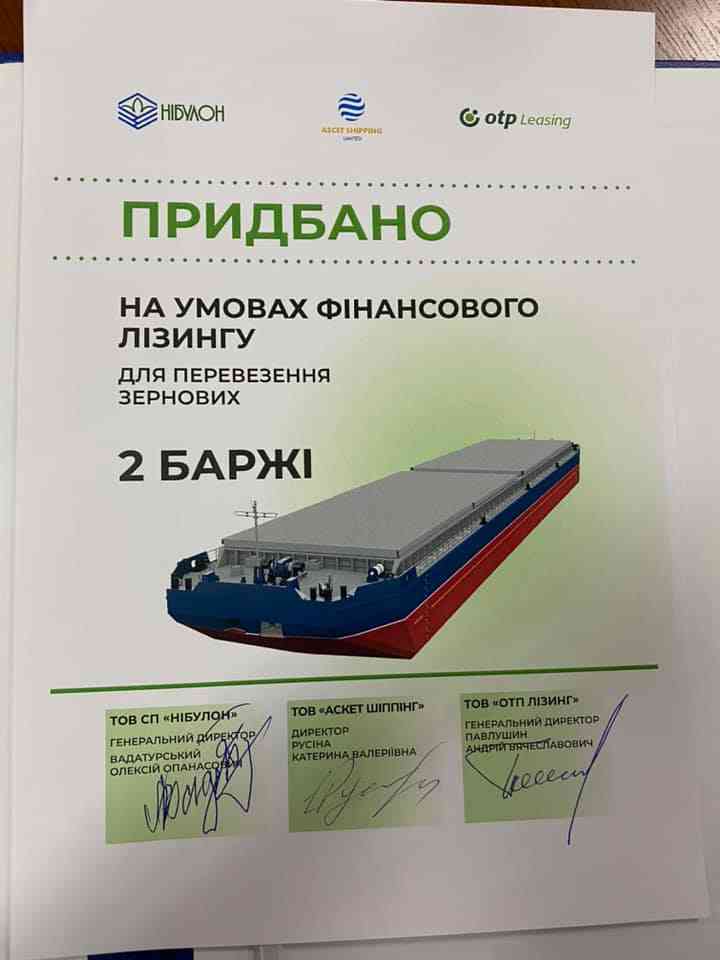 Універсальна лізингова компанія «ОТП ЛІЗИНГ» профінансувала операцію із передачі в користування двох барж, побудованих компанією Нібулон, портовому оператору «Аскет Шиппінг».
