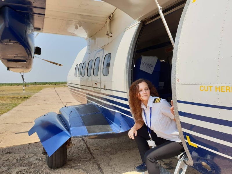 Перший політ у ролі пілотеси стався в Африці, в Конго. До речі, цю роботу я теж знайшла з першого разу. Я промоніторила всі компанії, які працюють на тому літаку, на якому я хотіла літати, і просто написала в компанію у WhatsApp власнику: «Добрий день, мене звати Юлія, я хочу у вас працювати». Так я полетіла працювати в Африку.