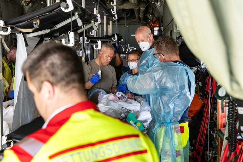 Цього літа Норвегія вперше здійснила транспортування пацієнтів із України, які перебували на апаратах штучної вентиляції легень, за допомогою літака C-130J Hercules. У цьому рейсі перевезли двох дітей із важкими опіками.