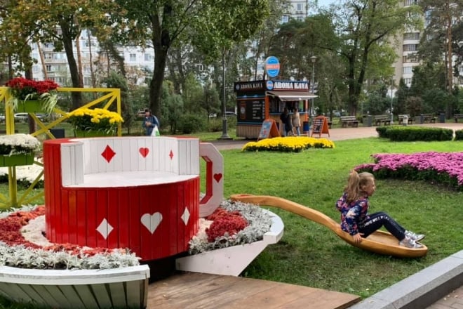 У Києві в парку «Перемога» офіційно відкрили нову композицію «Чаювання» виставки квітів «Аліса в країні див».