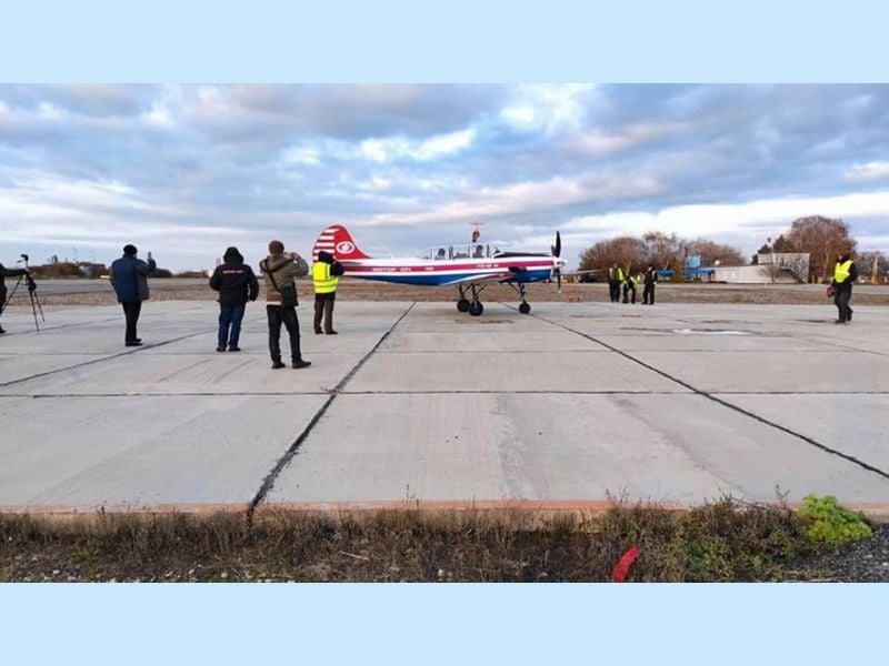 У Запоріжжі льотчики-випробувачі Сергій Філатов і Сергій Комин в рамках програми випробувань літака УТЛ-450 вперше підняли крилату машину в повітря.