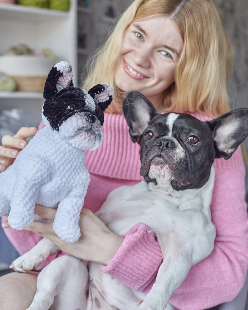 Потім я почала в’язати на замовлення. Спершу це були іграшки з мемів, персонажі з мультфільмів, простенькі котики й песики з деталями, які лише віддалено нагадували справжніх домашніх улюбленців. Але що далі, то якіснішими та реалістичнішими ставали мої роботи, і якось я погодилася виконати замовлення за фотографією. Ніколи нічого подібного я доти не в’язала, але вже мала досить досвіду, щоб спробувати в’язати без схеми.
