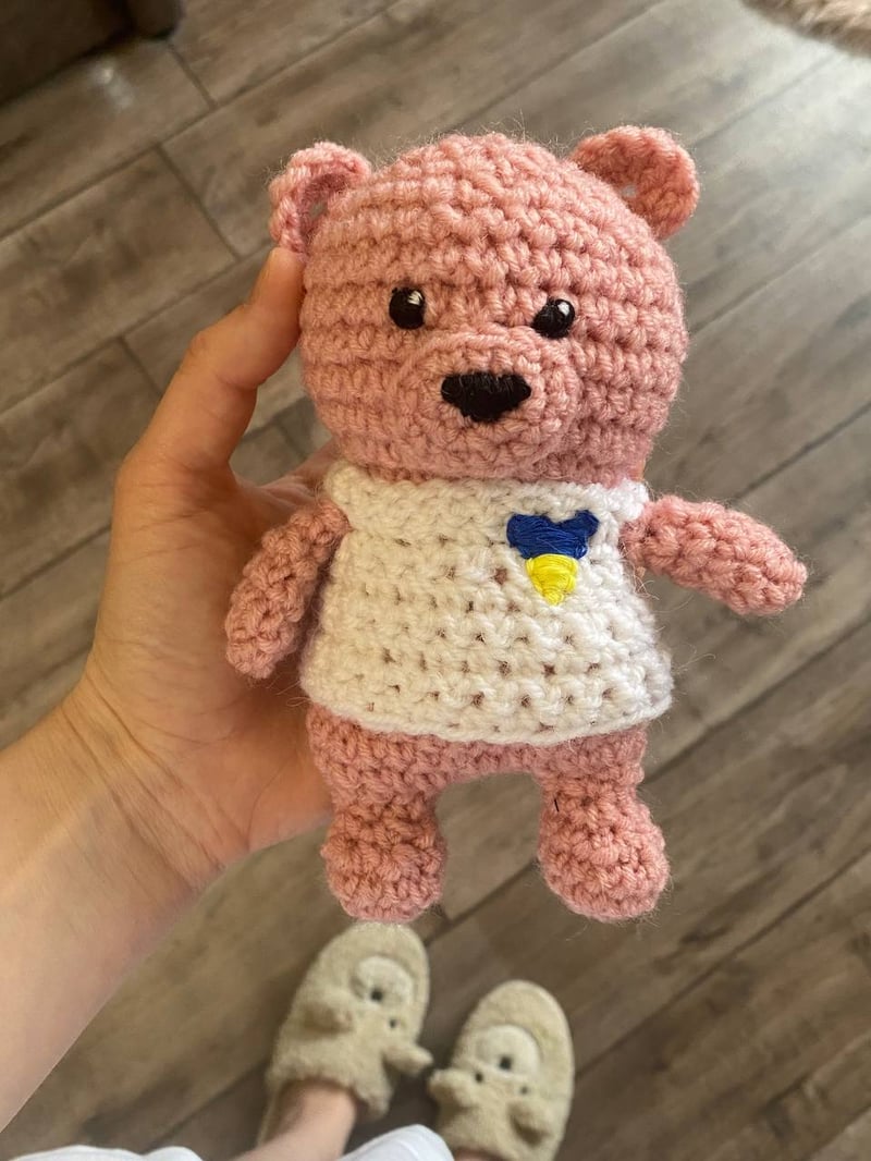 Свою першу іграшку гачком я створила 1 квітня 2022 року. Це був рожевий ведмедик із пряжі, яку я також знайшла вдома. Я захопилася й почала шукати плюшеву пряжу для наступних іграшок, але, оскільки спеціалізовані магазини ще не відновили роботу, це виявилося завданням із зірочкою. Знайшовши пару моточків, почала вʼязати щодня — по іграшці на день.